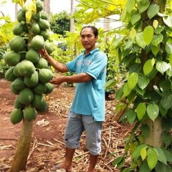 Veel gevraagd gewas voor de Indische en Surinaamse keuken. De meerjarige plant geeft prettig zoete, vlezige, langwerpige vruchten. Zet ze ‘s winters in een verwarmde kas of als potplant binnen. Het jonge blad is een delicatesse, ook de mannelijke bloemtrosjes worden gegeten (kort wokken). ‘s Zomers als kuipplant lekker naar buiten in een grote pot. Als bladplant al bijzonder fraai, vanaf het 2e jaar kan er vrucht komen. ‘Sinta’ heeft lichtoranje vruchtvlees en is een hybride met zeer goede groei-eigenschappen, oogstzekerheid en vruchtkwaliteit, een ziektebestendige aanrader dus. Meer informatie over deze belangrijke, tropische vruchtplant: aggie-horticulture.tamu.edu agora.uplb.edu.ph ZaaimethodeZaaien: het hele jaar, afdekken met dun laagje grond. Optimale kiemtemperatuur 25-30°C. Dek het zaaisel af met (vlies)doek om uitdroging te voorkomen. Leveringsmaandenhet gehele jaar