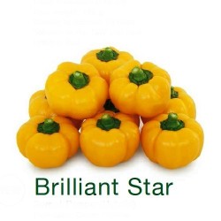 De meerhokkige vruchten hebben een grappige tomaatvorm, doordat ze breder dan hoog zijn (6,5x8 cm), vandaar de naam Tomaatpaprika. ‘Brilliant Star’ is extra dikwandig (0,8 cm!) en geeft een grote oogst, een professioneel ras waardig! De groene vruchten rijpen naar warmgeel en wegen ongeveer 170 g per stuk. De professional doet er 105 dagen over: van zaaien tot 1e oogst.
