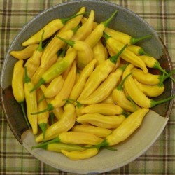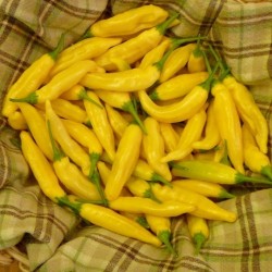 Deze meerjarige peper (vorstvrij overwinteren) kan in de kas flink groot worden, buiten kunnen ze beter af en toe gesnoeid worden. De beloning: een enorme oogst van lichtgele vruchten, vrij heet, met een zweem ananas-aroma. De vruchtjes rijpen van lichtgroen naar lichtgeel en zijn ongeveer 4-7 cm lang en 0,5 cm groot.
