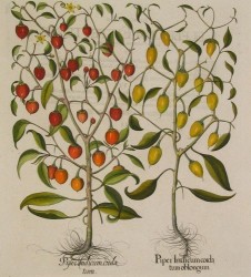 De bekende botanicus Basilius Besler (1561-1629) tekende o.a. dit type peper: rood, rond met een iets uitlopend puntje. Het ras komt voor in Brazilië en is w.s. al eeuwen oud! De korte en stevige struiken geven een goede oogst van zoete, tamelijk hete pepertjes. Heerlijk om een heet snackje van de maken: vullen met kaas of mals vlees! Voor de geoefende eter is het een verrukking om ze te snipperen door de salade.