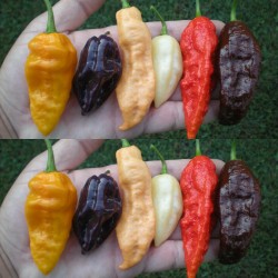 Een interessant mengsel van 7 beschikbare kleuren en rassen van deze hitte-koning: extreem heet en met een fruitige smaak, voor de fijnproever...