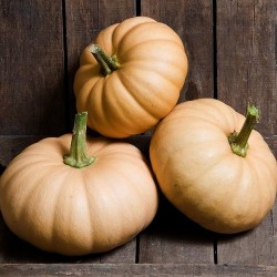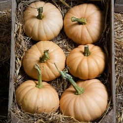 Pompoenen kunnen probleemloos buiten worden geteeld. De groeitoppen kunnen regelmatig worden gesnoeid en zijn eetbaar! Oogsten tijdens droog weer geeft de beste bewaarbaarheid. Alle pompoenen zijn eetbaar! Bij sommige soorten vermelden we de synoniemen, dat zijn de namen waaronder het soort ook bekend is. Bij andere soorten vermelden we zeer gelijkende soorten, heeft u duidelijk voorkeur voor een van die bij elkaar vermelde soorten, geef dat dan duidelijk aan. De buitenkleur van een butternut pompoen, waar deze pompoen ook aan verwant is combineert dit Britse ras met het uiterlijk van de Crown Prince, een bekend Australisch, platrond pompoentje met diepe groeven. Het resulteert is een heel aantrekkelijke vrucht, met oranje vruchtvlees van prettig fijne textuur. De vruchten wegen 1-1,5 kg per stuk en zijn zeer goed te bewaren. De rankende planten dragen ongeveer 5 vruchten per plant, die tamelijk laat rijpen.