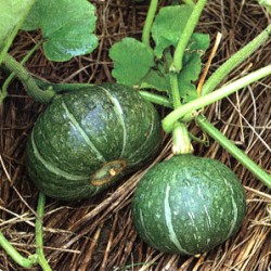 De donkergroene vruchten hebben lichtgroene strepen. De vorm is rond afgeplat met een diameter van 15-20 cm. Flink rankend. ZaaimethodeZaaien: vanaf half maart (binnen) of vanaf half mei buiten op de plaats van bestemming. Plantafstand 100x150 cm. Pompoenen kunnen probleemloos buiten worden geteeld. De groeitoppen moeten regelmatig worden gesnoeid en zijn eetbaar! Oogst tijdens droog weer geeft de beste bewaarbaarheid. Leveringsmaandenhet gehele jaar