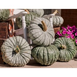 We zijn erg blij dat we het mooie sortiment van Outstanding Seed Company kunnen verkopen. Dit Amerikaanse bedrijf uit Beaver Falls (Pennsylvania) is gespecialiseerd in het kweken en verbeteren (door traditionele veredeling) van pompoenen. Ze letten daarbij op verbetering van kleur, vorm, smaak, ziekteresistentie, oogsttijdstip, oogstgrootte en bewaarbaarheid. Fijn om rechtstreeks bij de bron te kunnen kopen! Dit type komt van oorsprong uit Australiƫ en beleeft nu een spectaculaire Amerikaanse verbetering in smaak en oogst...! De vruchten zijn afgeplat en scherp gegroefd, grijs tot blauwgrijs van kleur met een ruwe textuur. Het dieporanje vruchtvlees is zoet, droog en van uitstekende kwaliteit en smaak. De gemiddelde diameter is ruim 30 cm met een hoogte van 18-20 cm. Ze wegen 10-15 kg, de rankende planten hebben een flinke groeikracht.