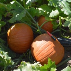 We zijn erg blij dat we het mooie sortiment van Outstanding Seed Company kunnen verkopen. Dit Amerikaanse bedrijf uit Beaver Falls (Pennsylvania) is gespecialiseerd in het kweken en verbeteren (door traditionele veredeling) van pompoenen. Ze letten daarbij op verbetering van kleur, vorm, smaak, ziekteresistentie, oogsttijdstip, oogstgrootte en bewaarbaarheid. Fijn om rechtstreeks bij de bron te kunnen kopen! Een halloweenpompoen van middelgrote afmeting: 7-9 kg. Een topper met dieporanje kleur en scherp afstekende ribben, de stelen zijn lang, dik en bijna zwart. De rankende planten blijven lang gezond, de resistentie tegen meeldauw is hoog.