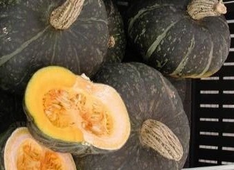 Een Japanse topper, zoetvlezig, iets nootachtige smaak. De donker-groene vruchten hebben lichtgroene strepen. De vorm is rond, afgeplat, diameter 25 cm.