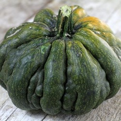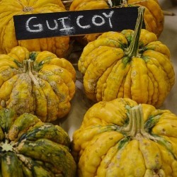Een prachtige vrucht met zeer oude historie! We vinden deze Zuid-Mexicaanse pompoen als afbeelding op oude Maya potterij. Prachtige brede ribben en bobbels geven de vrucht een exotisch uiterlijk. Oogst ze jong voor een heerlijk, bolronde courgette (guicoyitos) of laat enkele vruchten uitgroeien tot ware sieraden voor de herfsttafel. Rijpe vruchten zijn uiteraard eetbaar als pompoenen met een frisse, iets zoete smaak.