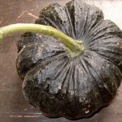 Pompoenen kunnen probleemloos buiten worden geteeld. De groeitoppen kunnen regelmatig worden gesnoeid en zijn eetbaar! Oogsten tijdens droog weer geeft de beste bewaarbaarheid. Alle pompoenen zijn eetbaar! Bij sommige soorten vermelden we de synoniemen, dat zijn de namen waaronder het soort ook bekend is. Bij andere soorten vermelden we zeer gelijkende soorten, heeft u duidelijk voorkeur voor een van die bij elkaar vermelde soorten, geef dat dan duidelijk aan. Een historisch ras uit het “Land van de rijzende zon”. Prachtige, 6kg zware, zwarte vruchten met cèmewit vruchtvlees. In 1884 kwam dit ras naar de USA en is toen als rariteit enorm populair geworden. De zaden zijn in de vorm van Chinese tekens en hebben daarom als bijnaam: Chinese Alfabet.