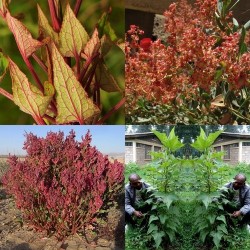 Deze Zuring uit Midden-Afrika is een erg nuttige plant aldaar omdat de plant zeer goed tegen droogte kan en ook heel veel productie geeft door de uitbundige groei. In Noord-Europa gebruiken we de plant in elk geval als eenjarige, maar met wat extra bescherming lopen de planten in het voorjaar wel weer uit. Het pijlvormige blad wordt op voedzame, vochtige grond heel groot en is heerlijk mals! Kort koken of rauw verwerken in een stamppotje: heerlijk en gezond (mits niet elke dag gegeten, net als bij rabarber). De (meestal rode) stengels worden gekauwd als suikerriet vanwege de zachtzoete smaak. Van de wortels wordt een kleurstof en toevoeging gemaakt om boter geler te kleuren en tegen schiften te beschermen. De uitbundige bloei is vlammend rood als de plant goed in de zon staat en niet teveel water krijgt. De plant kent ook veel medicinale toepassingen, zie internet. ZaaimethodeZaaien: op een zaaibedje of in een zaaibak van april-juni. Dek de zaden toe met een laagje grond en doe er (vlies)doek overheen. Na de eerste groei verspenen en later uitplanten. Leveringsmaandenhet gehele jaar