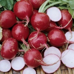 ECO GETEELDE ZADEN! Een ronde rode radijs, niet te groot. De beste voor vroege- en herfstteelt, matig heet van smaak en snel oogstbaar.