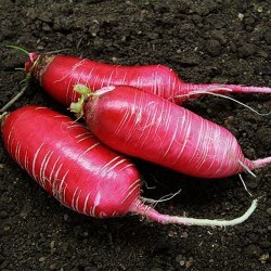 (20-30cm lang). De kleur is roze-rood en inwendig wit. Chinezen verwerken de schijfjes in bijv. roerbakgerechten, en soepen. Voor late teelt geschikt. ZaaimethodeZaaien: februari-augustus op rijtjes in de vollegrond, op een rijafstand dat er net tussendoor gelopen kan worden. ‘s Zomers de grond mulchen voor voldoende vocht. Tussen de plantjes uitdunnen op 5 cm. Leveringsmaandenhet gehele jaar