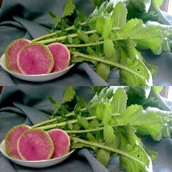 roze binnenkant, de doorgesneden plakjes zijn dus roze met een wit randje: aantrekkelijk voor salades en prima van smaak. Zaaien vanaf juni geeft overigens de beste resultaten. (Dosering: 15 g p/100 m2 -bij voorzaaien in perspot-, 100 g p/100 m2 bij direct zaaien) ZaaimethodeZaaien: februari-augustus op rijtjes in de vollegrond, op een rijafstand dat er net tussendoor gelopen kan worden. ‘s Zomers de grond mulchen voor voldoende vocht. Tussen de plantjes uitdunnen op 5 cm. Leveringsmaandenhet gehele jaar