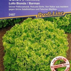 Sterk gekroesde geelgroene krulsla. Dit nieuwe ras is onvatbaar voor luis of (valse) meeldauw.