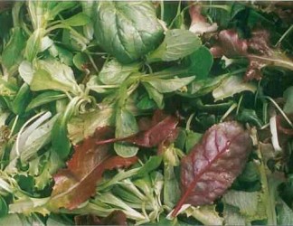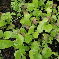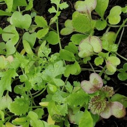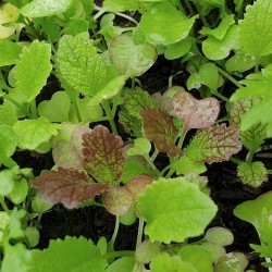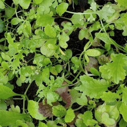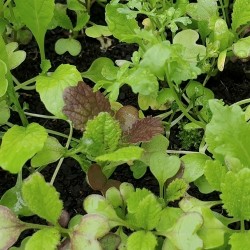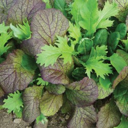 Een heerlijke pittige saladeschotel van Raapsteeltjes, Mizuna, (Rode) Amsoi, Tatsoi, Kaisoi, Rucola, Tuinkers en Tsoisim. Bij een zachte winter of in de kas snijdt u de hele winter door! Jong snijden vanaf de zijkant van de planten; houd de groeitop in stand.
