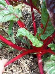 De stengels en nerven zijn diep appeltjesrood, een sierlijke snijbiet die ook nog eens heel lekker is! Ook geschikt om in een schaaltje met aarde als bietkers te eten. Zaai ze als het al wat warmer wordt anders is er enige kans op doorschieten.