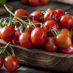 De kleinste tomaatjes in ons sortiment noemen we kerstomaatjes of pingpongtomaatjes, naargelang de grootte. Enkele variƫteiten zijn langwerpig of hartvormig en krijgen navenant een iets andere benaming. Sommige zijn zelfs oorspronkelijke, wilde soorten. De meesten smaken extra zoet, een enkeling heeft een zoetzure smaak. Kerstomaten liggen het dichtst bij de oorspronkelijke soorten, wellicht daardoor zijn ze o.h.a. beter bestand tegen de gevreesde aardappelziekte. Dit historische ras is al sinds de 19e eeuw in Duitsland zeer populair. Als je zolang geliefd bent, dan moet je wel iets te bieden hebben! De klimmende planten hebben een stevige hoofdstengel en dragen zware, brede trossen met soms meer dan 20 vruchtjes per tros. De rode vruchtjes (3-4 cm) zijn heerlijk zoet en komen nog steeds hoog uit smaaktesten.