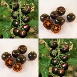 De kleinste tomaatjes in ons sortiment noemen we kerstomaatjes of pingpongtomaatjes, naargelang de grootte. Enkele variëteiten zijn langwerpig of hartvormig en krijgen navenant een iets andere benaming. Sommige zijn zelfs oorspronkelijke, wilde soorten. De meesten smaken extra zoet, een enkeling heeft een zoetzure smaak. Kerstomaten liggen het dichtst bij de oorspronkelijke soorten, wellicht daardoor zijn ze o.h.a. beter bestand tegen de gevreesde aardappelziekte. Een bonbon-bruin kerstomaatje van ongeveer 40-50 gram, met een zachte textuur en heerlijk zoete smaak vol aroma! Het is de eerste professionele, ziektebestendige versie van dit sierlijke tomaatje, een beloftevolle aanvulling van ons sortiment. De groei is klimmend, dus ondersteunen met stokken (klimspiraal) buiten of een klimtouw in de kas. De testen op internet zijn lovend, de opbrengt zeer groot!