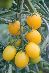 De kleinste tomaatjes in ons sortiment noemen we kerstomaatjes of pingpongtomaatjes, naargelang de grootte. Enkele variƫteiten zijn langwerpig of hartvormig en krijgen navenant een iets andere benaming. Sommige zijn zelfs oorspronkelijke, wilde soorten. De meesten smaken extra zoet, een enkeling heeft een zoetzure smaak. Kerstomaten liggen het dichtst bij de oorspronkelijke soorten, wellicht daardoor zijn ze o.h.a. beter bestand tegen de gevreesde aardappelziekte. Lekker en opvallend bestand tegen de aardappelziekte! De iets ovalen, gele vruchtjes rijpen vroeg aan brede trosjes met 8-20 vruchtjes. De meeste jaren lukt de buitenteelt heel goed, in de kas kan met 2-3 hoofdstengels gekweekt worden. De hoogte is 1,5-2 m (buiten), een steuntje is dus gewenst. De smaak? Sappig, fris, zoet en aromatisch.
