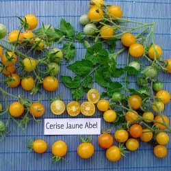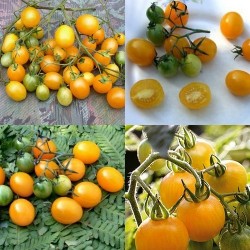 De kleinste tomaatjes in ons sortiment noemen we kerstomaatjes of pingpongtomaatjes, naargelang de grootte. Enkele variëteiten zijn langwerpig of hartvormig en krijgen navenant een iets andere benaming. Sommige zijn zelfs oorspronkelijke, wilde soorten. De meesten smaken extra zoet, een enkeling heeft een zoetzure smaak. Kerstomaten liggen het dichtst bij de oorspronkelijke soorten, wellicht daardoor zijn ze o.h.a. beter bestand tegen de gevreesde aardappelziekte. Een prachtige historische tomaat, waar we al in 1937 een beschrijving van vinden in een zaadlijst van Mc Fayden in Toronto. De plant groeit in een kas tot aan de nok, de kleine, gele, iets ovaalvormige vruchtjes hebben een klein tepeltje aan het uiteinde en wegen 5-15 gram. De vruchtjes groeien aan brede trossen in grote aantallen per tros. Elk vruchtje heeft voldoende stevigheid, zijn sappig en heerlijk zoet.
