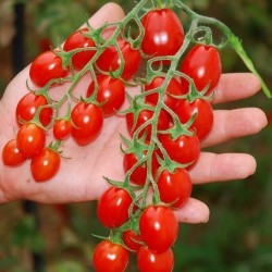 De kleinste tomaatjes in ons sortiment noemen we kerstomaatjes of pingpongtomaatjes, naargelang de grootte. Enkele variëteiten zijn langwerpig of hartvormig en krijgen navenant een iets andere benaming. Sommige zijn zelfs oorspronkelijke, wilde soorten. De meesten smaken extra zoet, een enkeling heeft een zoetzure smaak. Kerstomaten liggen het dichtst bij de oorspronkelijke soorten, wellicht daardoor zijn ze o.h.a. beter bestand tegen de gevreesde aardappelziekte. Eigenlijk is de Pomodoro “datterino” geen variëteit, maar een type. De ovaalronde tomaatjes worden geroemd vanwege de heerlijke zoete smaak en het frisse aroma. De naam is afgeleid van de dadel, wat weer duidt op het hoge zoetgehalte. Datterini-tomaatjes zijn beroemd en geliefd, ze groeien bij de meeste zomers prima buiten. De planten groeien flink uit en dragen de vruchtjes aan lange trossen.