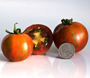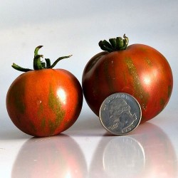 De kleinste tomaatjes in ons sortiment noemen we kerstomaatjes of pingpongtomaatjes, naargelang de grootte. Enkele variëteiten zijn langwerpig of hartvormig en krijgen navenant een iets andere benaming. Sommige zijn zelfs oorspronkelijke, wilde soorten. De meesten smaken extra zoet, een enkeling heeft een zoetzure smaak. Kerstomaten liggen het dichtst bij de oorspronkelijke soorten, wellicht daardoor zijn ze o.h.a. beter bestand tegen de gevreesde aardappelziekte. Een vroeg oogstbare rode, vrij kleine tomaat (pingponggrootte) met groene strepen. De smaak van de sappige vruchten is fruitig en aromatisch met een spannend scherp tintje. Heerlijk voor tomatensalsa!