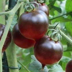 De kleinste tomaatjes in ons sortiment noemen we kerstomaatjes of pingpongtomaatjes, naargelang de grootte. Enkele variëteiten zijn langwerpig of hartvormig en krijgen navenant een iets andere benaming. Sommige zijn zelfs oorspronkelijke, wilde soorten. De meesten smaken extra zoet, een enkeling heeft een zoetzure smaak. Kerstomaten liggen het dichtst bij de oorspronkelijke soorten, wellicht daardoor zijn ze o.h.a. beter bestand tegen de gevreesde aardappelziekte. Dit Amerikaanse ras geeft vruchtjes van 50-100 g in de vorm van een hart, elk vruchtje eindigt in een frivool puntje. De kleur is donkerrood met indigoblauwe schouders, soms zijn de vruchtjes geheel blauw (hoe meer zon hoe blauwer). De blauwkleuring wordt veroorzaakt door de aanwezigheid van het gezonde anthocyaan. De sappige vruchtjes smaken uitstekend!