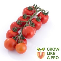 De planten groeien sterk en vormen lange trossen met heerlijk zoete, aromatische tomaatjes (50 gram) die ongeveer de grootte van een pingpongballetje hebben. Ze hebben een hoge resistentie tegen Phytophthora!
