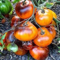 We hebben beide originele rassen in ons assortiment, zo kun je zien wat er uit komt als de genen zich vermengen. King Blue is nu (2022) in zijn 6e generatie, dus het is bijna stabiel, slechts een paar uitschieters van tijd tot tijd. Aangenomen wordt dat tomaten ongeveer zeven generaties (=F7) nodig hebben tot het nieuwe ras weer 100% “zuiver” is uit zaad. King Blue heeft oranje vruchten met een sterk blauwe bovenkant, hoe zonniger het jaar, hoe meer blauw. Dit alles dankzij de gezonde stof anthocyaan, die ook bijvoorbeeld in aubergine, kersen en bosbessen zit. Voor een vleestomaat is King Blue niet erg groot (100-200 g), de verrassing komt als je hem opensnijdt, want het vruchtvlees is oranjegeel met een roze middenstip! De smaak is heerlijk fruitig we hopen dat dit een “blijvertje” wordt. (foto: organicseeds.top) ZaaimethodeZaaien: maart-mei binnen. Bij een hoogte van 5 cm in potjes verplanten. Zeer licht zetten en vanaf april bij mooi weer buiten afharden. Buiten uitplanten niet voor eind mei. Tomatenplanten gebruiken veel water. Bij dit hogere of (in de kas) klimmende type moeten de zijscheuten (dieven) regelmatig worden verwijderd. Plantafstand 60-80 cm. Leveringsmaandenhet gehele jaar