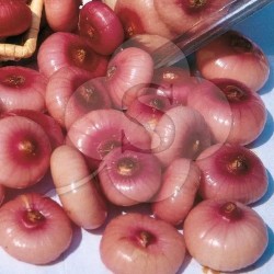 Gelukkig zijn Italianen goed in het instandhouden van unieke en smakelijke groenten! Dit zeer platronde uitje uit Bergamo is daar een bewijs van... De schil is roze tot koperkleurig en inwendig zijn de uien subtiel lichtroze van kleur. Heerlijk fris en niet te heet van smaak, Italianen leggen ze graag in het zuur, je kan uiteraard alle bekende bewerkingen (inclusief rauw in de salade) op dit fraaie uitje loslaten!