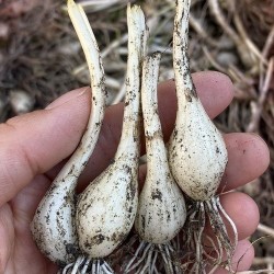 We importeerden een kleine portie van dit Okinawa Sjalotje uit Japan en kweekten 3 jaar om het soort te leren kennen. Opvallend is het smalle blad en de vrij trage groei, maar ook de zeer goede vorstbestendigheid. Dit alles resulteert in een uitje dat opvallend lekker is: iets pikant, een tikje scherp en zoet... In Japan worden de uitjes als voorafje of net als Edamame bij een drankje genuttigd. Ga lekker kweken en geniet mee van dit wondertje uit de zuidelijkste eilandengroep van Japan. Een leuke toegift is de fraaie roze bloei.