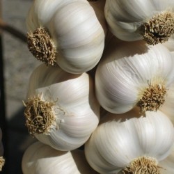 ZaaimethodeKnoflook kan jaarrond worden geplant, als de teentjes in goede conditie zijn. De meeste rassen zijn in herfst en winter op voorraad. Wij voeren rassen, die succesvol in Nederland worden geteeld. Meteen na ontvangst de bol openbreken en de tenen in de grond poten: 2-5 cm diep en 10-20 cm uit elkaar. In het najaar geplant staat de knoflook in februari (of eerder) al boven en in juni-juli kunnen ze geoogst worden. Later geplant betekent uiteraard latere oogst. Oogsten is geen verplichting, knoflook is winterhard en kan ook gewoon in de grond blijven. Na oogsten het loof vlechten zoals je knoflook wel eens in de winkel ziet en de bollen in de zon drogen. In de kamer zijn ze soms wel een jaar te bewaren! De teelt is niet moeilijk, maar goede tips vind je in onze teeltbeschrijving in pdf (zie onderaan de website). Knoflook schijnt luizen in b.v. rozen te weren, het proberen waard!