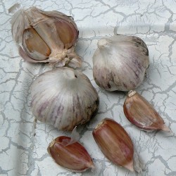 Sterk Duits ras met een uitstekende oogst! 11-18 tenen per bol zijn geen uitzondering. We horen graag uw smaakervaringen.
