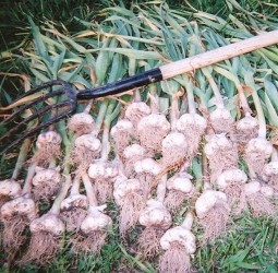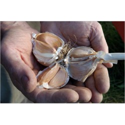 ZaaimethodeKnoflook kan jaarrond worden geplant, als de teentjes in goede conditie zijn. De meeste rassen zijn in herfst en winter op voorraad. Wij voeren rassen, die succesvol in Nederland worden geteeld. Meteen na ontvangst de bol openbreken en de tenen in de grond poten: 2-5 cm diep en 10-20 cm uit elkaar. In het najaar geplant staat de knoflook in februari (of eerder) al boven en in juni-juli kunnen ze geoogst worden. Later geplant betekent uiteraard latere oogst. Oogsten is geen verplichting, knoflook is winterhard en kan ook gewoon in de grond blijven. Na oogsten het loof vlechten zoals je knoflook wel eens in de winkel ziet en de bollen in de zon drogen. In de kamer zijn ze soms wel een jaar te bewaren! De teelt is niet moeilijk, maar goede tips vind je in onze teeltbeschrijving in pdf (zie onderaan de website). Knoflook schijnt luizen in b.v. rozen te weren, het proberen waard!