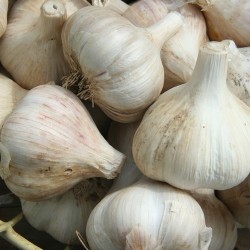ZaaimethodeKnoflook kan jaarrond worden geplant, als de teentjes in goede conditie zijn. De meeste rassen zijn in herfst en winter op voorraad. Wij voeren rassen, die succesvol in Nederland worden geteeld. Meteen na ontvangst de bol openbreken en de tenen in de grond poten: 2-5 cm diep en 10-20 cm uit elkaar. In het najaar geplant staat de knoflook in februari (of eerder) al boven en in juni-juli kunnen ze geoogst worden. Later geplant betekent uiteraard latere oogst. Oogsten is geen verplichting, knoflook is winterhard en kan ook gewoon in de grond blijven. Na oogsten het loof vlechten zoals je knoflook wel eens in de winkel ziet en de bollen in de zon drogen. In de kamer zijn ze soms wel een jaar te bewaren! De teelt is niet moeilijk, maar goede tips vind je in onze teeltbeschrijving in pdf (zie onderaan de website). Knoflook schijnt luizen in b.v. rozen te weren, het proberen waard!