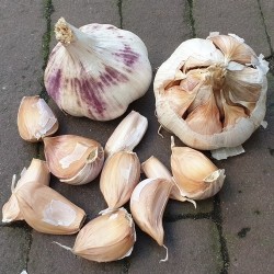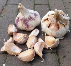 Knoflook kan jaarrond worden geplant, als de teentjes in goede conditie zijn. De meeste rassen zijn in herfst en winter op voorraad. Wij voeren rassen, die succesvol in Nederland worden geteeld. Meteen na ontvangst de bol openbreken en de tenen in de grond poten: 2-5 cm diep en 10-20 cm uit elkaar. In het najaar geplant staat de knoflook in februari (of eerder) al boven en in juni-juli kunnen ze geoogst worden. Later geplant betekent uiteraard latere oogst. Oogsten is geen verplichting, knoflook is winterhard en kan ook gewoon in de grond blijven. Na oogsten het loof vlechten zoals je knoflook wel eens in de winkel ziet en de bollen in de zon drogen. In de kamer zijn ze soms wel een jaar te bewaren! De teelt is niet moeilijk, maar goede tips vind je in onze teeltbeschrijving in pdf (zie onderaan de website). Knoflook schijnt luizen in b.v. rozen te weren, het proberen waard!