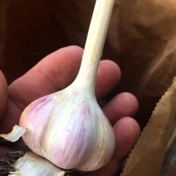 Een van de nieuwere Porcelain-types in ons sortiment. Oorspronkelijk komt Floha uit het voormalige Oost-Duitsland. Deze was keurig bewaard door de genenbank IPG Gatersleben Duitsland onjder nummer ALL264. Je kan een middelgrote bol verwachten met gemiddeld 6 tenen per bol. De opbrengst neemt toe bij warme en zonnige zomers. In de keuken is dit een breed toepasbare knoflook: niet te pittig maar met een lange nasmaak…