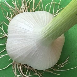 Knoflook is onderverdeeld in verschillende typen, dit is er eentje uit de Porcelain-groep. Torsten heeft ondervonden dat deze groep zich in Noord-Europa soms anders gedraagt dan zuidelijker. Die verschillen ordenen we in 2 "haplogroepen". De ene behoudt zijn groeiwijze stabiel in het noorden en de andere begint individuen te produceren met wel 6-7 tenen. The Glory of Sandberg is een zeer stijlvolle Porcelain-plant van het eerste groeitype. Torsten schrijft erover: Het uiterlijk van de plant is het mooiste dat ik ooit van Porcelain heb gezien en hij heeft zelden meer dan 4 grote tenen. Verwacht in Noord-Europa geen enorme opbrengst, maar deze variƫteit produceert de grootste bol in verhouding tot de groene massa van de plant. The Glory of Sandberg is mijn best bewaarde geheim en ik gun deze aan mijn knoflookvriend Ton Vreeken! ZaaimethodeKnoflook kan jaarrond worden geplant, als de teentjes in goede conditie zijn. De meeste rassen zijn in herfst en winter op voorraad. Wij voeren rassen, die succesvol in Nederland worden geteeld. Meteen na ontvangst de bol openbreken en de tenen in de grond poten: 2-5 cm diep en 10-20 cm uit elkaar. In het najaar geplant staat de knoflook in februari (of eerder) al boven en in juni-juli kunnen ze geoogst worden. Later geplant betekent uiteraard latere oogst. Oogsten is geen verplichting, knoflook is winterhard en kan ook gewoon in de grond blijven. Na oogsten het loof vlechten zoals je knoflook wel eens in de winkel ziet en de bollen in de zon drogen. In de kamer zijn ze soms wel een jaar te bewaren! De teelt is niet moeilijk, maar goede tips vind je in onze teeltbeschrijving in pdf (zie onderaan de website). Knoflook schijnt luizen in b.v. rozen te weren, het proberen waard! Leveringsmaandenseptember t/m januari