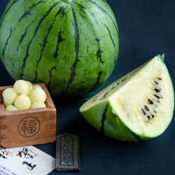 Suikerzoet en wit als sneeuw! De textuur en bijzonder goede smaak hebben van Silver Yamato meteen een favoriet gemaakt in ons sortiment. Dit mooie, historische ras komt in al zijn zilverwitte schoonheid uit de provincie Nara een streek rondom de oude stad Nara middenin het hoofdeiland Honshu, Japan. De smaak daagt een beschrijving uit: testproevers hebben een vleugje citrus, tonen van zoete Aziatische Nashi-peer en een algehele romige bite opgemerkt, wat een smaakervaring oplevert die je niet mag missen! Dit is een vroegrijpe watermeloen, ideaal voor verschillende teeltklimaten. De vrucht van 3-5 kg is perfect een heerlijk desert na een (stevige) maaltijd. Vergeet niet dat historische rassen gemakkelijker barsten dan moderne rassen, die op langdurig transport worden veredeld. Japanners gaan trouwens sowieso veel voorzichtige om met transport van vruchten en groenten. (vrij vertaald en aangevuld naar rareseeds.com)