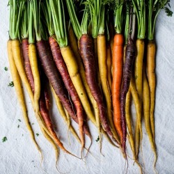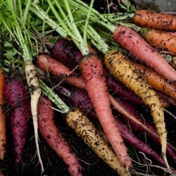 Gemengde wortelen op uw bord: een prachtig mengsel van slanke, smakelijke wortels, in alle bestaande kleuren: wit, crème, geel, oranje, rood en paarszwart. Een sieraad, die zowel rauw als gekookt kleurig verrast! Ondanks de verschillende kleuren zijn ze redelijk tegelijk oogstbaar.