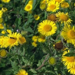 Een natuurlijke vlooienvijand! Vroeger het huismiddel tegen vlooien bij honden en katten, probeer het uit... Deze telg van het vlooienkruidgeslacht is 50 cm hoog met gele bloemhoofdjes, dezelfde vorm als madeliefjes. De bloei is heel rijk van juli-september. Aan de naam zie je het al, dat hier vroeger ook dysenterie mee werd bestreden. De plant komt nog in het wild voor. In de natuur (tijdens kamperen bijvoorbeeld) houd je de planten boven een kampvuurtje om vliegen, muggen en andere insecten te verdrijven.