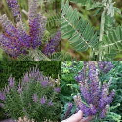 Alles is eetbaar aan deze plant uit de VS, maar het meest bekend is de eigenschap van de kleurstof indigo in de diepblauwe bloemetjes. Net als lavendel krijgt deze plant op den duur een houtige basis, die door snoeien (in het voorjaar) steeds wordt verjongd. De witgrijze stengels en fijngeveerde blaadjes geven al enorme sierwaarde. Bovenin bloeit deze 1m hoge plant met trosjes van langwerpige bloeiaren in diepblauwe kleur met grijswollige basis, kruidige geur! Goed winterhard, geef ze een niet te vochtige, wel zonnige plek. In de loop van de jaren wordt de plant hariger en grijzer. In het wild overleeft de plant door de diepe beworteling een brand gemakkelijk.