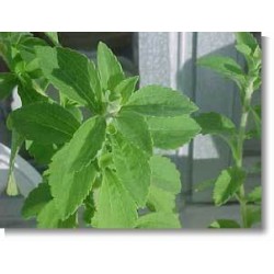 Steevast het middelpunt van verwondering, dit eenjarige plantje uit N.O.-Paraguay. Wie op het blad kauwt merkt het al: een prettige natuurlijke zoetheid, die je bijna nergens anders naturel aantreft! Lekker om tussendoor van te snoepen, of in de koffie, thee of gerechten als rodekool en rabarber. De plant went langzaam aan de herfstkou, maar op tijd binnen halen kan de levensduur verlengen, hoewel onze korte winterdagen niet ideaal zijn... De blaadjes kunnen worden gedroogd en tot poeder worden vermalen voor een goed houdbare, zelf geteelde zoetstof!