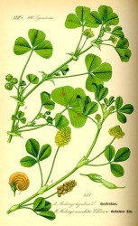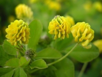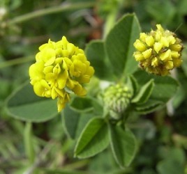Deze meerjarige klaver bloeit bijna het hele jaar met gele bloemhoofdjes. Vlinderbloemige, is dus in staat stikstof uit de lucht te binden en op te slaan in de wortels. Bij afmaaien en doorwoelen komt deze beschikbaar voor andere planten. Hoogte 30 cm, houdt niet van zure grond, kan tegen lichte schaduw, dus een prima onder begroeiing. Het blad is na kort roerbakken eetbaar.