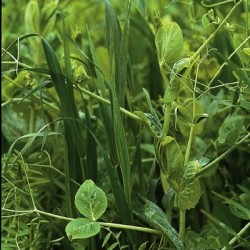 60% Veld-erwten ‘DS-Admiral’. Meeldauwresistent, stevige planten, leggen stikstof (uit de lucht) vast in de grond. De scheuten zijn heerlijk zoet in de sla en de uiteindelijke erwtjes lenen zich goed voor verse eet of in de erwtensoep. 25% Haver. Geeft een zeer goede oppervlakte-beworteling waardoor mineralen minder uitspoelen. Verse gewas geeft veel organische stof. 15% Voederwikke. Zeer populair bij nuttige insecten zoals bijen! De vlinderbloemen zijn groot (2 cm of meer) en hebben een opvallende tweekleuring: donkerpurperen zwaard met lichtpurperen vlag. Deze vlinderbloemige is ook in staat stikstof uit de lucht te binden en op te slaan in de wortels. Bij afmaaien en doorwoelen komt deze beschikbaar voor andere planten. ZaaimethodeZaaien: april-juni of half augustus-september op de plaats van bestemming. Om een goede verdeling te krijgen kan het zaad worden vermengd met (droog) zand. (volume vergroting) Leveringsmaandenhet gehele jaar