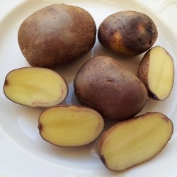 Deze zaailing uit het 1980-er Duitse ras Barbara geeft een grote oogst van ouderwets bloemige aardappels. De knollen zijn iets ovaal en hebben een donkerpaarse schil met lichtbruine vlakken, evenals de voorouder Barbara. Het crèmekleurige knolvlees heeft een paarse ring net onder de schil. Een ideale pieper voor purée, een kuiltje met jus of gebakken. Middenvroeg oogstbaar.