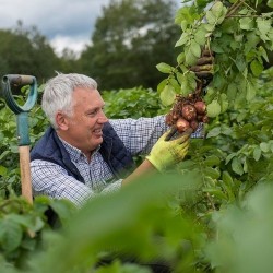 “Die aardappels halen het niet bij vroeger..” Kent u die verzuchting? Misschien leefde (en proefde!) u vroeger intenser, maar als het om die oude vergeten soortjes gaat hebben we goed nieuws voor u: ze zijn er weer, die piepers van weleer! Oude rasjes van vóór 1950 met bijzondere smaakjes, speciale kleuren, onbekende vormen. Wat zou het leuk zijn, als al die historische rassen op een speciaal schap van de groenteman te koop zouden zijn... maar voorlopig moet u ze zelf (laten) telen voor deze “nieuwe” culinaire ontdekkingstocht. Even een culinaire tip: vanwege de bijzondere kleur of vorm, niet schillen maar goed schoonmaken en in zijn geheel koken, vaak blijft de kleur na de kook behouden, het oog wil ook wat nietwaar...? In de Engelse traditie worden geoogste aardappels netjes schoongemaakt en geshowd in manden. Deze oogstpresentatie zou u verder kunnen uitbouwen met bijzondere komkommertjes, veelkleurige snijbiet, pompoenen, rode boerenkool, blauwe maïs: “snuffel” onze zaadgidsen eens door naar al die bijzondere (oude maar nu trendy) groenten. Aardappels, die u een poosje hebt geshowd, worden langzaam groen en zijn dan niet meer eetbaar. Voor de kweker is belangrijk te weten, dat deze oudjes ziektegevoeliger zijn: plant ze ruim en houdt ze goed in de gaten. Gezellige tip: plant gewoon eens minstens 5 rassen, ze zijn per kleine porties (1 kg) verpakt, zet een duidelijk bord bij de aparte soorten. Kook en keur ze apart, maak er een “Van Gogh Aardappeletersfeest” van... Kent u een “vergeten” soortje: bericht het ons. Rest me u nog een zeer goede oogst toe te wensen en (voor later): eet smakelijk!