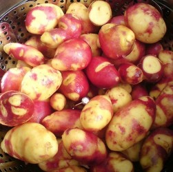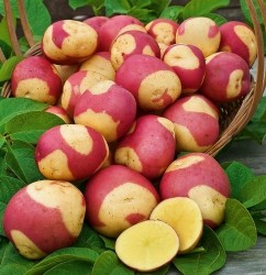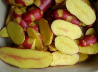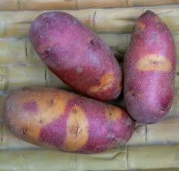 De meeste van onze aardappels stammen af van Peruaanse en Zuid-Chileense soorten (Solanum tuberosum). In de hogere delen van de Andes, in Bolivia, groeit de Solanum phureja in een verscheidenheid van cultuurrassen, die al eeuwen daar geteeld worden. Het is de Scottish Crop Research Institute gelukt om voor ons klimaat geschikte rassen te ontwikkelen. Vanwege de unieke smaak en kleur zeer geliefd bij de nieuwsgierige en zich vernieuwende kok! Kook ze voorzichtig op laag vuur ongeveer 8 minuten, daarna afgieten en in een afgesloten pan laten nagaren.