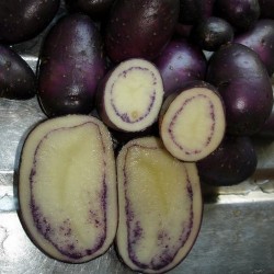 Zwarte aardappels vormen een onbekende groep in ons sortiment. De schil is dieppaars tot bijna zwart en het knolvlees is paars, gewolkt of wit. Om het verrassende effect van de kleur te behouden bevelen we aan om de knollen niet te schillen maar te wassen voor het koken. Planten vanaf half april, als de grond voldoende warmte heeft. Voorkiemen in het licht of in een grote pot mag eerder. Zet ze niet op een te natte plek, wel goed in de zon. De gemiddelde plantafstand is 70x40 cm, wij adviseren om 80x40 cm aan te houden om ziektes te voorkomen.