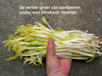 WIJ DOEN ONS BEST OM DE KWALITEIT VAN DE AARDPEREN OPTIMAAL TE HOUDEN. OMDAT DEZE AL IN DECEMBER BINNEN KOMEN KAN VANAF MAART EEN DEEL VAN DE KNOLLEN MINDER WORDEN. EERST DE KNOLLEN (ZO NODIG) IN WATER LEGGEN, VERVOLGENS SLECHTE DELEN WEGSNIJDEN EN PLANTEN.