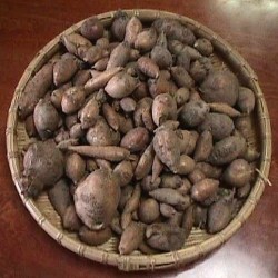 De indianen van Noord-Amerika wisten dit gewas op waarde te schatten en het is onbegrijpelijk dat deze sterke plant niet al veel bekender is in Nederland! De klimplant heeft met zijn puntige gedeelde blad en de fantastische bloei een sierwaarde, die de in moestuin zeer welkom is! De lathyrus-achtige bloemen geuren heerlijk zoet en hebben een iets gedraaide vorm met een diepe kleurcombinatie: kastanjebruin, rood, oudroze en creme zijn verenigd in 1 bloem, ze staan aan dichte trossen. De geur leidt tot interessante discussies: zoet, kruidig en chocolade maar er zijn ook mensen die de geur niet waarderen. De late bloei (augustus-september) leidt niet tot zaadvorming maar is een mooie hekkensluiter van het bloeiseizoen. Vanaf november (het 2e of 3e jaar) mag het wonder worden opgegraven en zijn de knolletjes te rooien. Deze groeien als een ketting aan een lange navel en zijn na enkele jaren groei de moeite van het rooien waard. Om te uitbundige groei te voorkomen kan in grote kuipen worden geteeld. Goed vochtig houden en regelmatig bemesten! De smaak? Als een aardappel, dus koken, bakken, frituren, genieten.… Apios bevat een protease-remmer die volledig afgebroken wordt tijdens het verhitten. Het is dus zelfs niet nodig om het kookvocht weg te gieten, hoewel men in Bolivia dit wel doet, daar kkokt men de Apios in melk. Mijn kweker vertelt: “We eten ze al jaren als de perfecte vervanger van tamme kastanjes, bij de spruitjes of als “kastanjepuree”! ZaaimethodePlantafstand 30x30 cm. Oogst vanaf de tijd dat de plant bovengronds afgestorven is. Oogst alleen wat u wilt eten, de rest kan in de grond blijven of in een kist worden ingekuild met zand of aarde. Leveringsmaandenhet gehele jaar